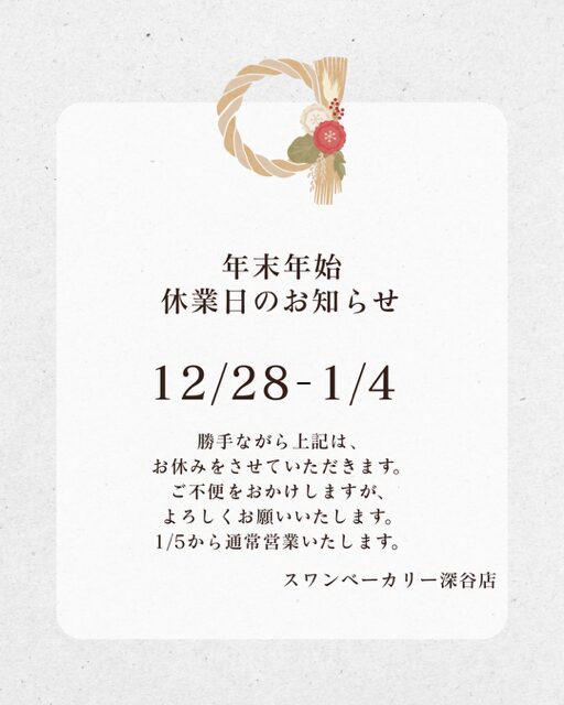 今年もたくさんのご来店ありがとうございました。来年も皆さまに美味しいパンをお届けできるようスタッフ一同心よりお待ちしております。