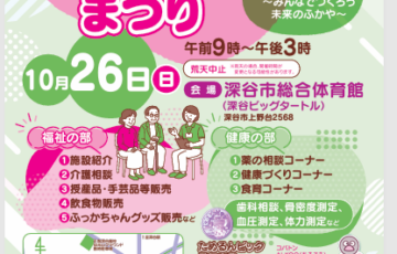 福祉や健康に関する活動を行っている団体が、日ごろの活動内容や生産品などを市民や地域へPRする場、市民の交流の場として開催しています。 スワンベーカリー深谷店も出店します😊 【開催日】令和7年10月26日(日曜日)【開催時…